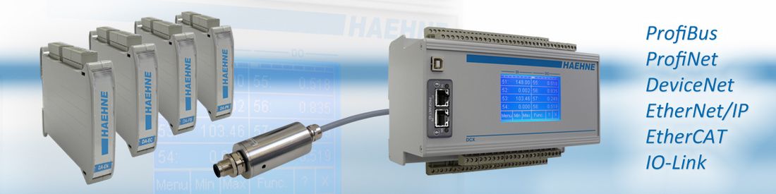 HAEHNE liefert komplette Messketten bestehend aus Kraftsensor und DMS- Messverstärker mit einer großen Auswahl an Ausgabesignalen, wie z.B. 0-10 V, 4-20 mA, IO-link, Profinet oder Ethernet. Der neue DMX-Messverstärker macht mit seiner Parametrierungs-App die Inbetriebnahme und Inspektion noch einfacher. Der Multifunktionale Messverstärker DCX mit bis zu 8-Messkanalen erfüllt fast alle Anforderungen im Zusammenhang mit der Verstärkung, Auswertung und Regelung von Messignalen. Verstärker sind sowohl für die Montage im Schaltschrank auch für den Einsatz im Feldgehäuse verfügbar.