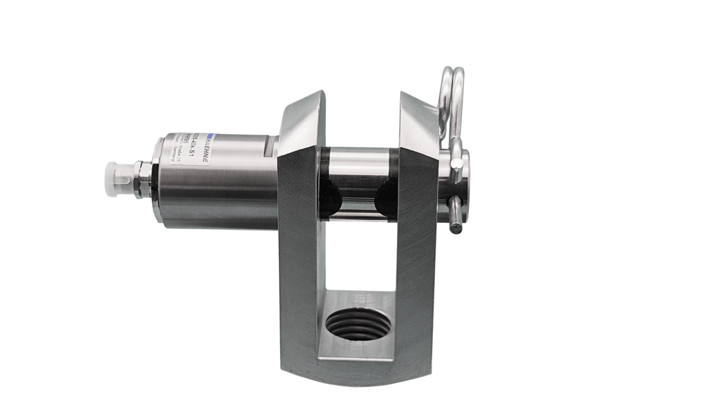 Der Kraftmessbolzen KMB-IO wurde gezielt für die Erfassung von Zug- und Druckkräften ent-wickelt, die durch Gabelköpfe in Bauteile (wie z. B. Laschen und Haken) eingeleitet werden. Zur Anwendung kommt er insbesondere in Verbindung mit Pneumatik- bzw. Hydraulik-zylindern.